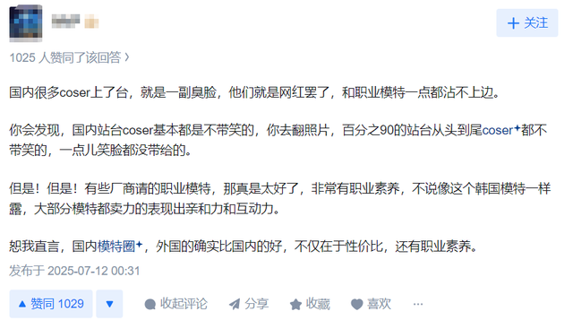 有网友评论国内coser 的业务能力真的是差距很多,对比来说,这次的韩国coser完全是 技压群雄、艳压群芳——网友们一致点赞,说的都是演出水平和个人能力到位,这才能获得认可呀!